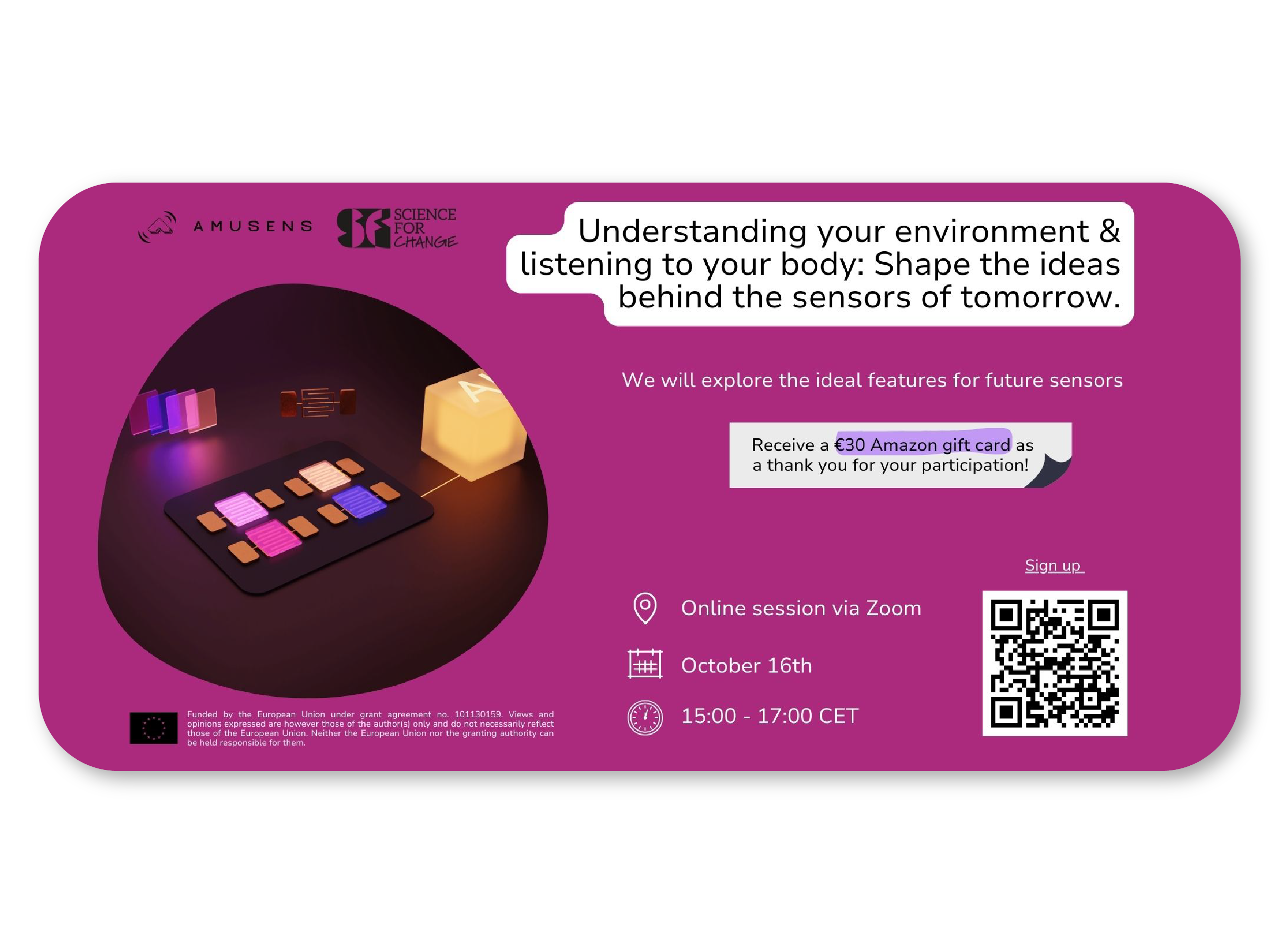 On October 16, 2025, the AMUSENS project reached a crucial validation milestone by hosting its major European workshop, “Understanding your environment & listening to your body: Shape the ideas behind the sensors of tomorrow.” This online session was the third...